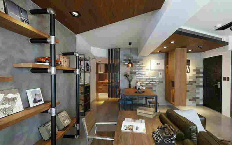 后工業時代風格的餐廳和書房布置呈現在你眼前,水泥墻面沒有過多的修飾,一種質樸風在這里彌漫。實木的一字型置物架組合起來,形成了一個書架,在這里擺放了很多相冊和說藏品,裝飾充盈了空間。前方是寬大的書桌,還有獨立的小座椅形成了很好的搭配,安靜的時刻在這里讀書學習,讓心情也變得格外平和。