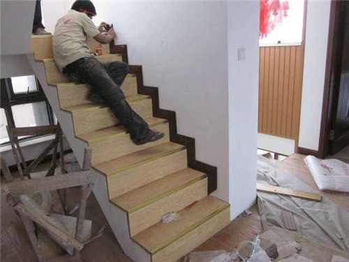 鋪裝時,在地面打眼,并用小木塊找平,再固定木龍骨,最后將地板固定,木龍骨鋪設完,可雙腳踩在龍骨上,。塑料龍骨和鋁合金龍骨的鋪設方法相同,相對于木龍骨,優點是不用鉆孔,打釘,破壞樓梯結構。