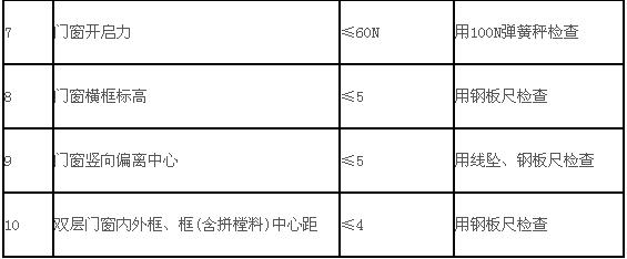 表2 鋁合金門窗安裝質(zhì)量的允許偏差和檢驗方法