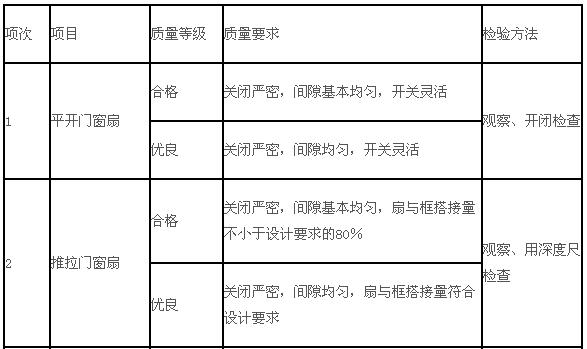 表1 鋁合金門窗安裝的質(zhì)量要求和檢驗方法