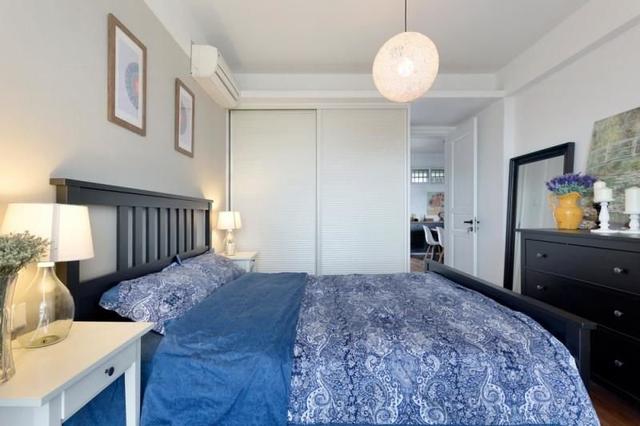 次臥室的房間定義是老人房,因為考慮未來兩年會有小寶寶的降臨,老人要帶孩子,自然的這個空間作為了老人房來設計,所以色彩上相對比較穩重一些。