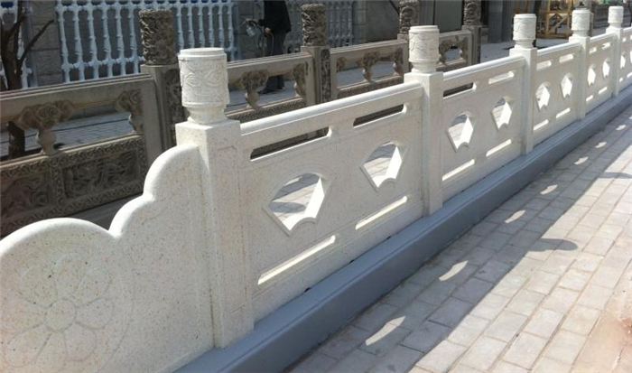 石欄桿的也是多種多樣,各種石材都可以制作,但是因為材料的不同,做成的石欄桿的堅固程度也不一樣,價格也會有所差異。其中在市面上最常見的還要數漢白玉石欄桿,當然還有青石欄桿、以及花崗石欄桿,但是從表面上看,還是漢白玉石欄桿最為美觀,而且也是很堅固。因此,在許多名勝古跡都有漢白玉石欄桿。