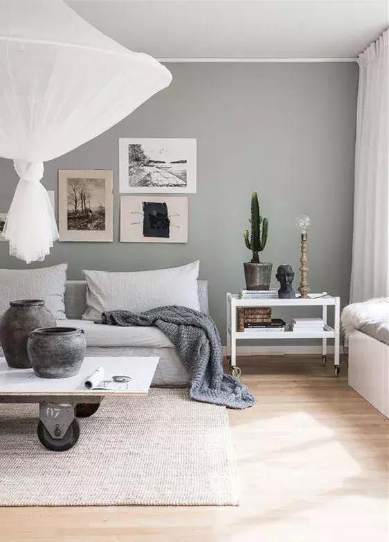 帶點(diǎn)淡灰的彩色,搭配在宜家風(fēng),muji風(fēng)里面很合適,如果你對(duì)搭配有恐懼,那么在選家具和地板的時(shí)候,記得選白色,或者木色。最后,來個(gè)深色的燈具,靠背,椅子來點(diǎn)綴,提升整個(gè)空間的亮度。