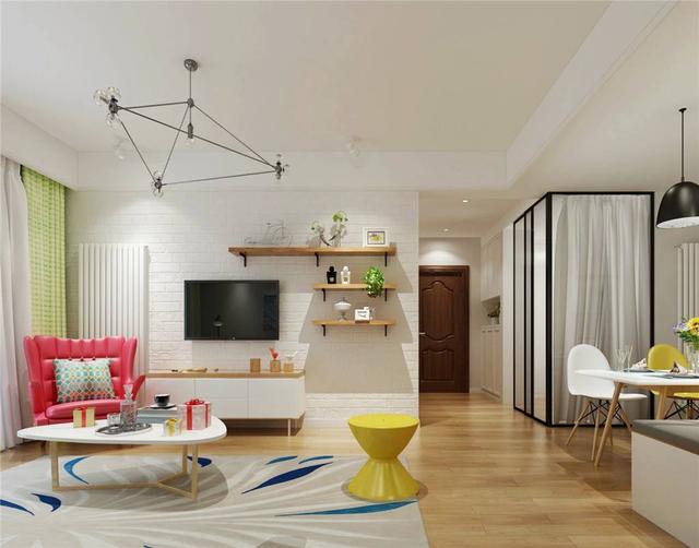 這種的設計方法,有助于劃分空間。對兩個空間來說,中間的連通設計,能夠讓房間看起來更加的寬敞。而其實這個隔斷也可以設計成一個儲物隔斷,客廳這邊掛電視,然后背面就是小小的儲物吧臺,這樣的設計也會非常受歡迎。