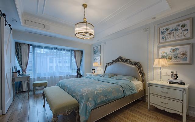 主臥的空間寬敞又舒適,簡約的裝扮特別的溫馨,美式的床頭特別的典雅大氣,采光挺好的,雖然沒有落地窗那么完美,但也不差,亮堂堂的臥室看著心情就好。
