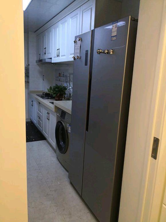 廚房是我最喜歡的,預留的大冰箱位置不占空間,沒有生活陽臺,直接把洗衣機放在廚房也不錯,上下柜收納很實用。