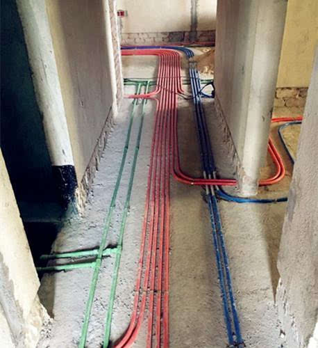 對于選擇鋪地磚或用實(shí)木地板的業(yè)主來說這個不成問題,因?yàn)楣艿揽梢灾苯愉佋谒嗾移綄踊蚴驱埞窍旅妗?但是對于鋪復(fù)合地板的業(yè)主解決這個地面不開槽走管的問題,其實(shí)有兩種方式可供選擇:一個是采用水泥找平;另外一個就是鋪墊寶。如果大家覺得以上兩項(xiàng)會使層高降低而不愿意損失層高的話,就只能采用地面開槽方式了。