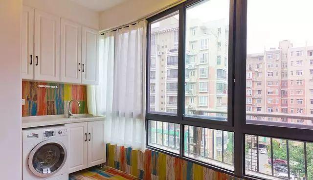 陽臺鋪了五彩斑斕的地磚,優質的陽光照進來色彩豐富極了,搭配白色的洗衣機柜子,顏值絕對在線。