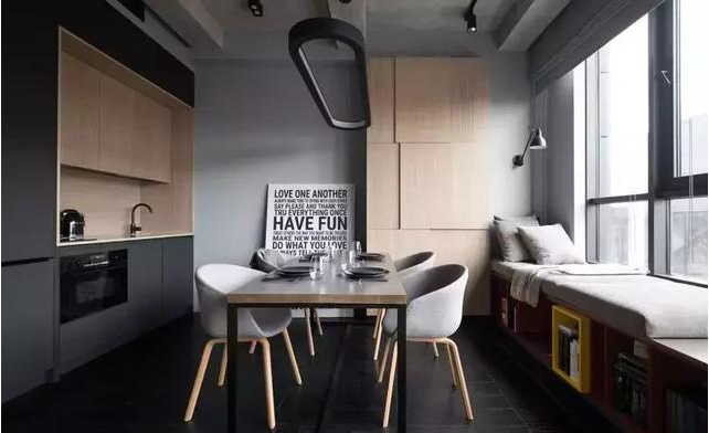 ▲室內面積并不算寬敞,設計師通過開放式的布局,讓所有功能區(qū)都呈現(xiàn)在視線內。
