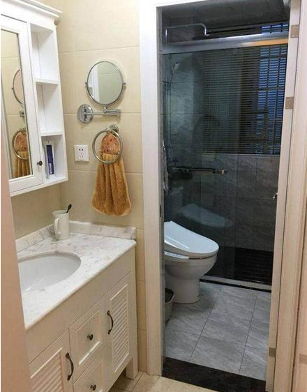 最后給大家看看主衛,主衛和次衛差不多的格局,但干濕分離只做了一道,這樣設計實用性也挺不錯的!日常居家使用足以。以上就是這套現代混搭簡歐風格新房的全部裝修了,整體來看室內亮點還是蠻多的,無論是大氣的客廳、高顏值的餐廳還是實用漂亮的臥室都很不錯,尤其是主臥的L型衣帽間設計,真心聰明。