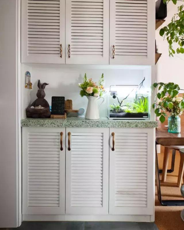 儲物柜是近兩年業主最喜歡的一種隔斷方式,書籍,零碎物件和綠植都可以擺放于此,完美兼顧了功能性和裝飾性。
