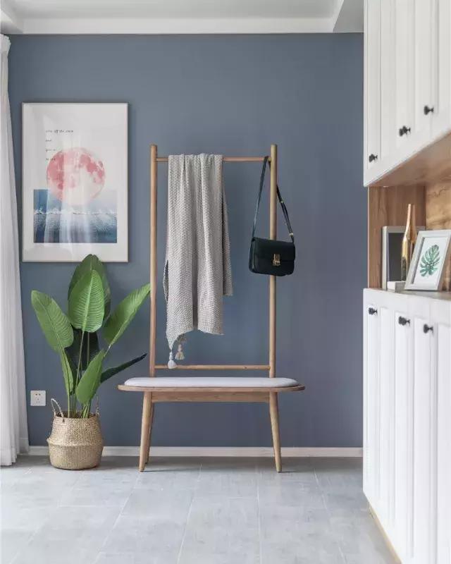 玄關墻面刷藍色乳膠漆,有種內心安寧的感覺
