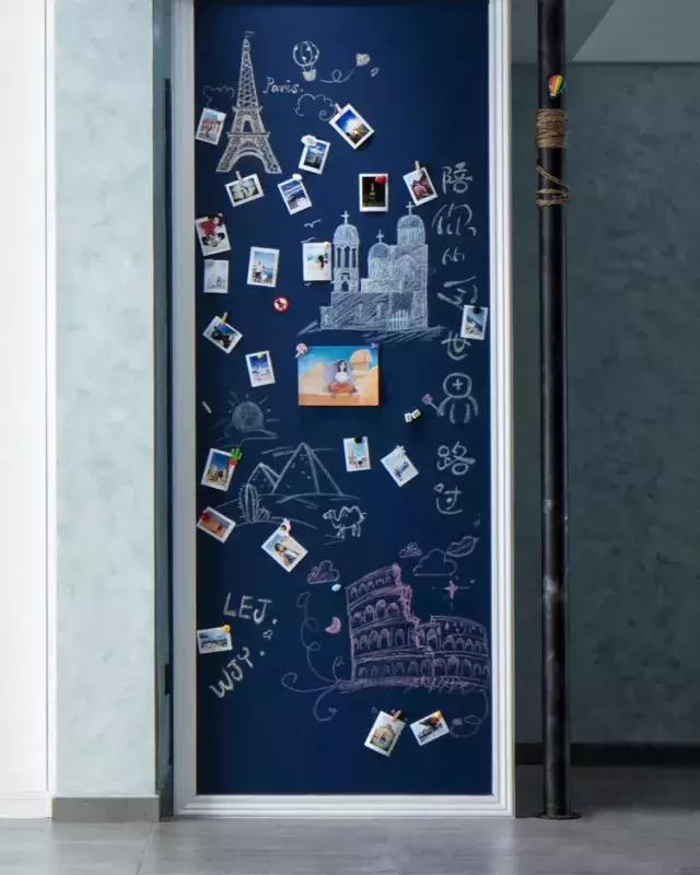 黑板墻上貼著全家人的照片,一起旅行的相冊,也為美好生活增加溫馨浪漫的回憶。