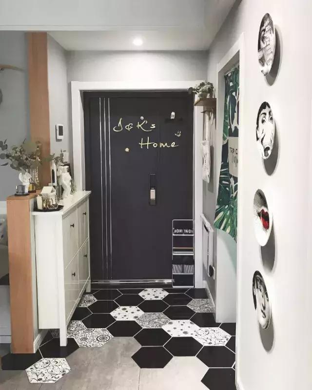 用不同款的瓷磚拼接,可以打造個性化的效果,家里的玄關不再單調。