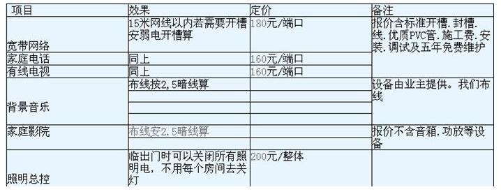2. 弱電如果需要地面開槽每米增加20元。(不打折)