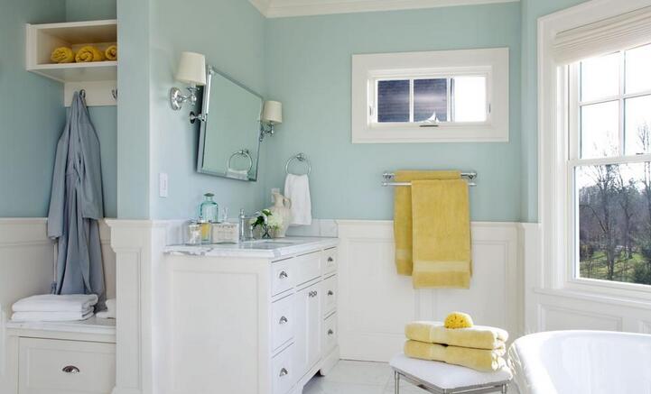有窗子的歐式衛浴是人人都向往的,可是窗下的墻面,假如不安裝浴缸,可能就會變成垃圾墻面被鋪張掉。這種掛墻的分體收納柜,剛好利用了這片空間,間隔淋浴區和洗面盆區域都很近,日常使用的物品都能存放。