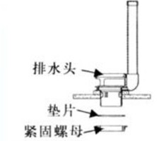 b. 將緊固螺母旋松,取出墊片。然后把排水頭裝在水箱排水孔上,調整合適位置后。套上墊片,擰緊緊固螺母。
