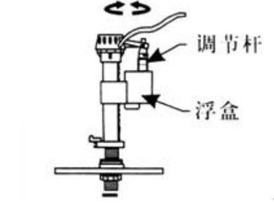 如圖調校調節(jié)桿可以使水箱水位升高或者降低。當逆時針旋轉調節(jié)桿時,浮盒下降,水箱水位降低。反之,順時針旋轉調節(jié)桿,是浮盒上升,水箱水位升高。