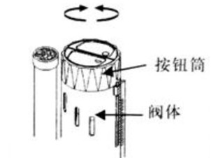 如圖旋轉閥體按鈕簡,可360°旋轉來對應按鈕的推桿方向。