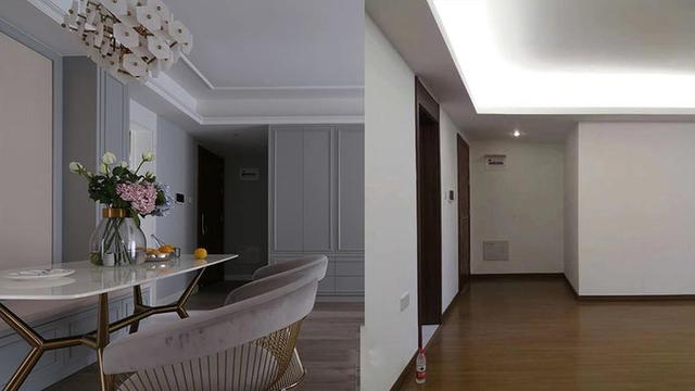 從這個角度可以看到餐廳和客廳的設(shè)計(jì),整體上看上去很是素雅,空間感也是十分的寬敞,畢竟是用來當(dāng)做婚房,為了以后居住的舒適感,以這樣的方式進(jìn)行裝修也是很夢幻,充滿了現(xiàn)代家裝的檔次。