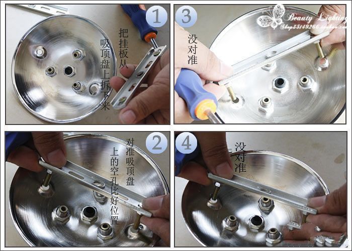把掛板從吸頂盤上拿下來→對準吸頂盤→上螺絲