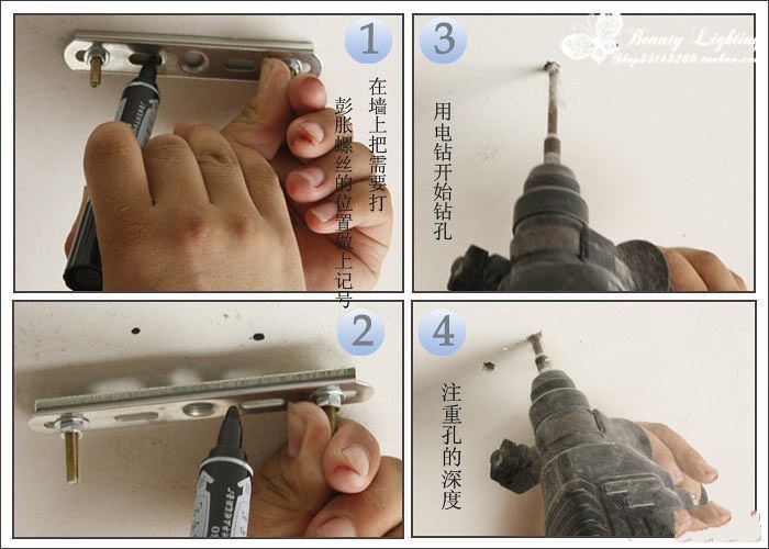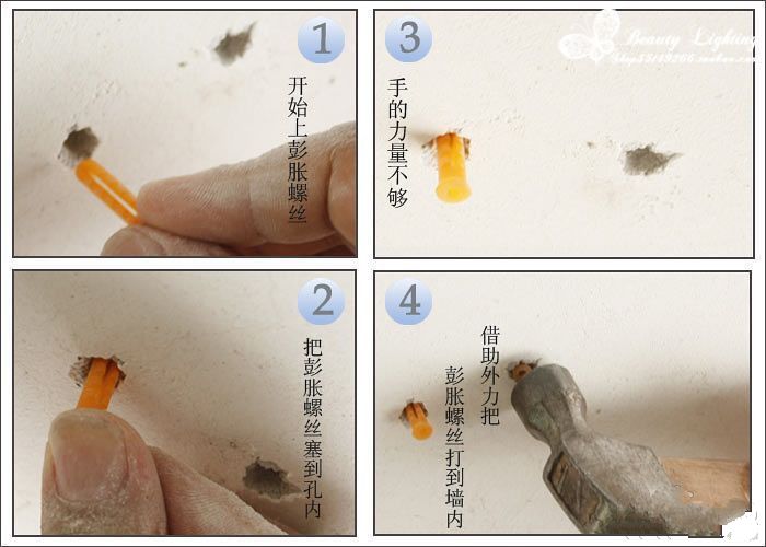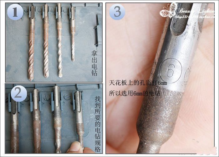 注意事項:天花板上的孔一般打6mm,安裝是要選擇適合的電鉆規(guī)格