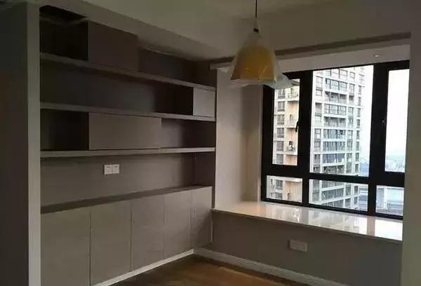 餐廳有個大大的飄窗,準備將飄窗利用起來,做個嵌入式柜子,為了多一些收納空間,還做了一個嵌入式的餐邊柜。