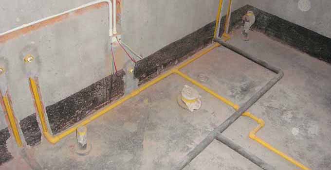 2、衛生間水管都是從房頂過,這樣可以減少人為損壞的幾率。冷熱管的接口、出口處須平行。一般左邊為熱、右邊是冷水管。