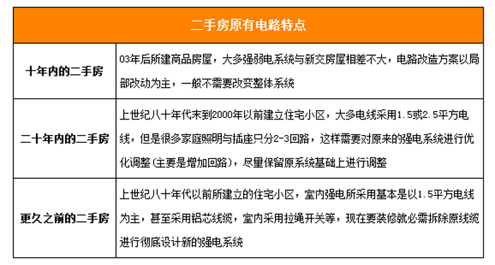 二手房電路:由于二手房建立年代不一樣,其水電管線設(shè)置情況與現(xiàn)在可能不同,水電改造方案制定時(shí)需要考慮到。