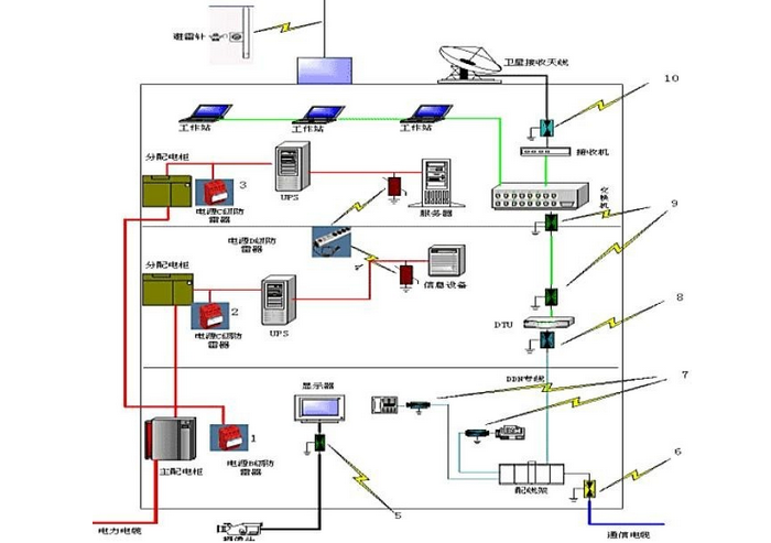 要做好建筑物內的等電位連接,等電位連接的目的在于減少需要防雷的空間內,各種金屬部件和各種系統之間的電位差。建筑物防直擊雷的避雷引入了強大的雷電流通過引下線入地,在附近空間產生強大的電磁場變化,會在相鄰的導線(包括電源線和信號線)上感應出雷電過電壓,因此建筑物避雷系統不但不能保護計算機,反而可能引入了雷電。計算機網絡系統等設備的集成電路芯片耐壓能力很弱,通常在100伏以下,因此必須建立等電位連接,減小電位差,確保計算機特別是計算機網絡系統等弱電系統的安全。