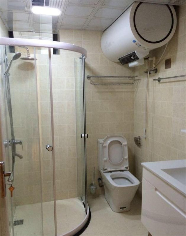 衛生間設計直接模仿的酒店,采用刀把型的玻璃門,做到了干濕的分離,把淋浴區布置在角落的位置,這樣可以增加空間的利用率。