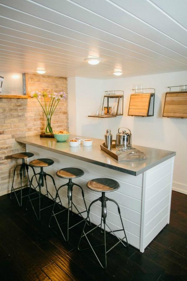 這個酒吧可能不在實際的地下室,但它是一個簡單的設計,你可以從中獲得一些想法。我們喜歡這件作品的吧臺高度,大理石臺面也不錯。訪問_裝飾板,找到更多類似的東西。