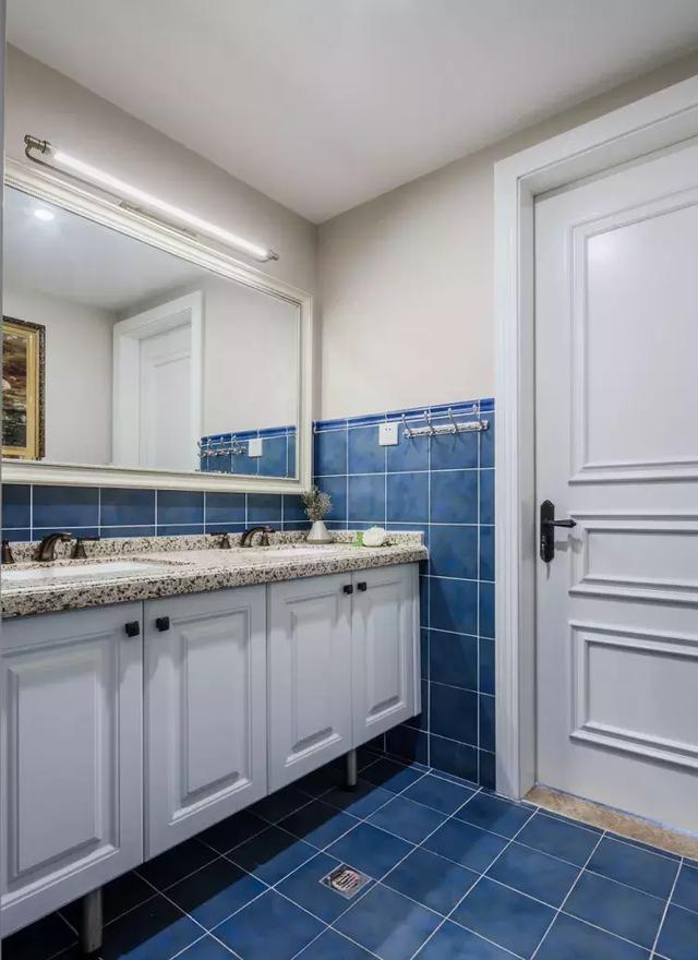 衛(wèi)生間色彩干凈清爽,細膩寧靜,給人一種很浪漫的地中海的感覺。