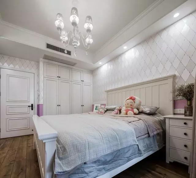 女孩房,白色為基礎,點綴粉嫩的紅色,是4歲小公主夢想的城堡。在夢里,她是穿著洛麗塔可愛紗裙的愛麗絲,打開一道門,偶遇了一只拿著鬧鐘的兔子先生。