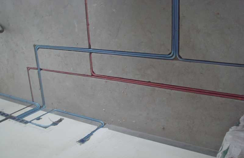 4、水路排線過橋要下彎。水路在重合的地方要做過橋處理,這是最好選擇下彎,因為上彎會增加地面的高度,影響層高。水路做下彎的時候要注意避開地暖管,免得破壞地暖。
