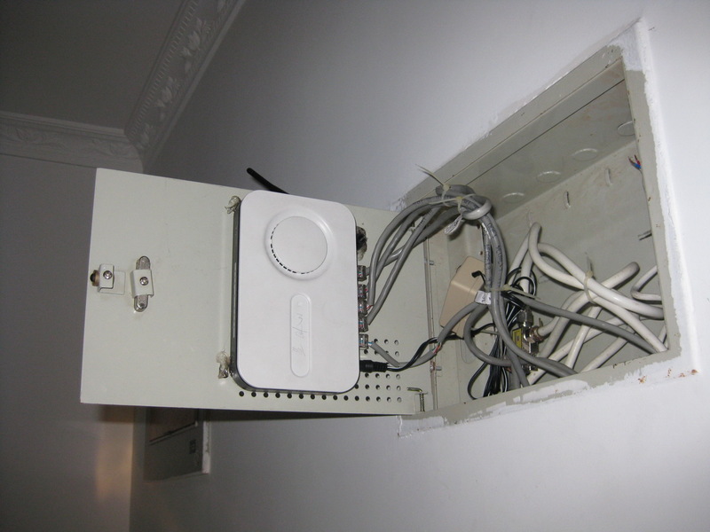 3、路由器安裝不進箱。現在網絡越來越發達,而且有些電視也具有了上網功能,這時路由器的排線就要注意連接電視的位置。因此某些施工隊在安裝路由器時就會把路由器安裝在弱電箱內,其實這是一個錯誤的做法。原因有三:其一,弱電箱的金屬外殼會屏蔽無線信號,減弱無線路由器的信號。其二,路由器的電壓是220V,將路由器安裝進弱電箱就要引220V的電壓進弱電箱,這樣強弱電在同一空間容易引發電路問題。其三,路由器在工作時會產生熱量,在弱電箱內,路由器散熱不好,也會對弱電箱里面的設置產生影響。