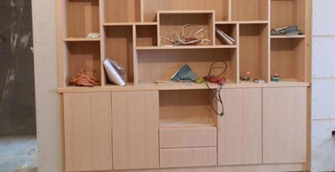 檢驗?zāi)竟な┕すに嚇藴?、所有新做磚墻及靠衛(wèi)生間墻面做木飾物,如衣柜、造型墻面,必須在磚墻及夾板面分別刷2遍防潮漆后才能進行下一道工序。