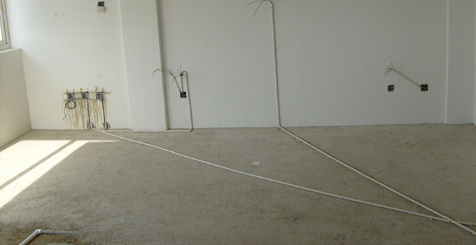 開槽處主要是確定開槽路線,線路開槽可遵循下面三個原則:不破壞原有強電原則、不破壞防水原則,線路最短原則。通過用線的多少來確定PVC管的用料,同時也便于確定管槽的寬度。