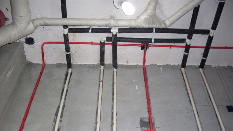 2、水管用PPR管,管線紅色為熱水管,籃色為冷水管;