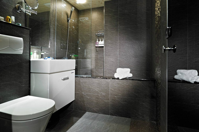 全能薄型板材——目前國際流行使用一種先進的全能薄型板材,這種材質既防水 又有純天然木材紋理,可用在裝飾浴室墻面和浴室柜臺面,所營造出的逼真實木效果令人難辨真假。