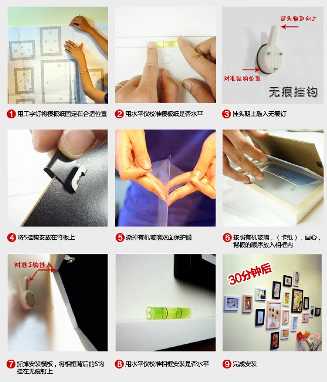 照片墻怎么掛:照片墻安裝方法二:無痕釘安裝