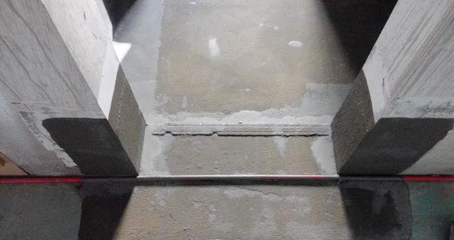 因為衛生間的接頭是埋在瓷磚下面的,而滲水就是在這放水的瞬間,水在水泥砂漿層慢慢的延伸到了客廳的墻壁,如果是在樓上,水就會在樓梯口處低落。