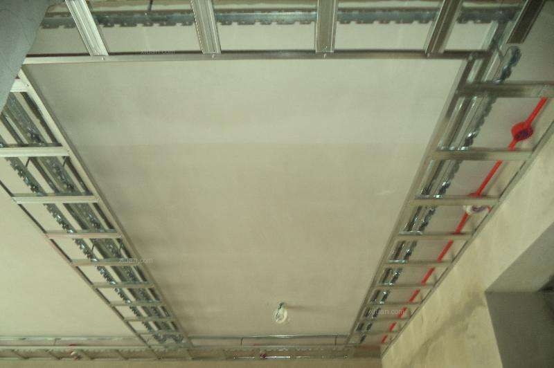 吊頂的施工包括打龍骨,上石膏板,處理釘眼,填縫,貼繃帶等步驟,其中每一步都很彼一時要,大家在裝候船中要嚴格監督工人是否者做到位了。龍骨表面進行完防火處理后就可以開始組合了,工人會用射釘槍在兩根龍骨結合處向45度進行固定。這時需要掌握好力度,防止龍骨產生裂紋。