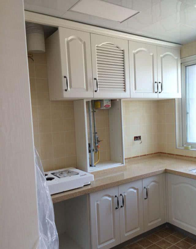 在廚房里,安裝著兩排櫥柜,可以進行收納,上面的臺面做成棕色,非常適合家人用。這樣做還有一個好處是,不會太怕油污,平時也容易清理。建議大家在裝修廚房的時候,也要記住這一點,要不做成不銹鋼的,如果做成其他材質的,一定要選偏暗一點的顏色,才能耐臟。