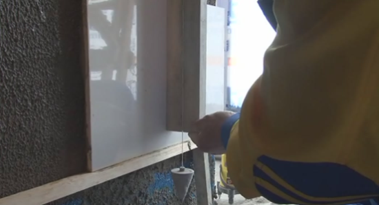 3 、選磚、排磚,對墻體進行挑選,預排,確定非整磚部位,對門窗洞口上下和兩側要事先計劃磚排列方法。