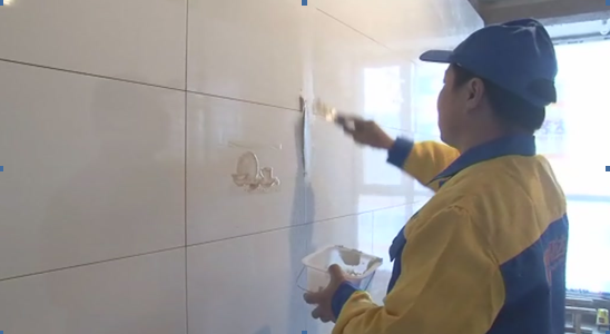 8、 如果磚縫小于3㎜或無縫鑲貼,用勾縫劑做擦縫處理,擦縫后,用軟布或棉絲將墻磚表面擦拭干凈。