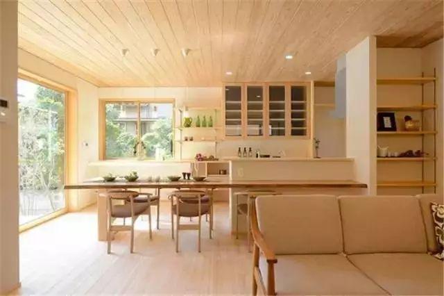 日式住宅內(nèi)部結(jié)構(gòu)十分簡(jiǎn)單,起居空間多半都由地板、柱子和屋頂三部分組成,開放式客餐廚(LDK)空間布局通透,十分利于室內(nèi)空氣流通和家人情感交流。