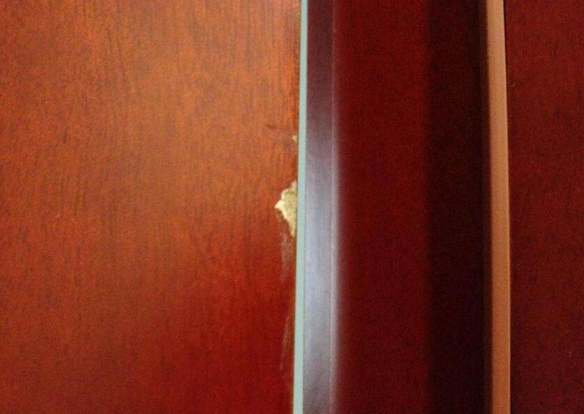 2、沒有專業(yè)的設(shè)備,貼木皮時(shí)未處理好,導(dǎo)致實(shí)木門掉漆。