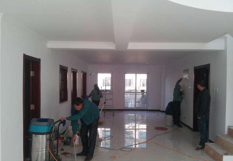 8、 地面的清洗:把所有的做完以后,就是地面的清洗了,地面也要分材質(zhì),是木地板的、還是瓷磚的、或是石材的,當(dāng)分清后就選擇專用清潔劑稀釋后,開始清洗。地面上的膠漬可用刀片清除,頑固的可用去膠劑處理;最后一道工序做完后,應(yīng)由領(lǐng)班全面檢查一遍后,確認(rèn)無遺留后撤離現(xiàn)場(chǎng)。