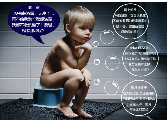 至于選擇何種制熱類型的浴霸,筆者僅提一點:燈泡取暖的浴霸對于有小孩子的家庭來說,盡量不要選,